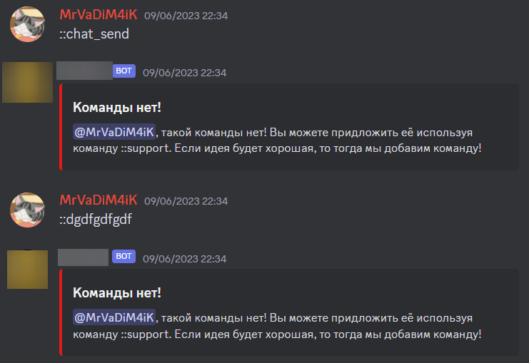 - бот не должен отвечать на несуществующие команды (пример);